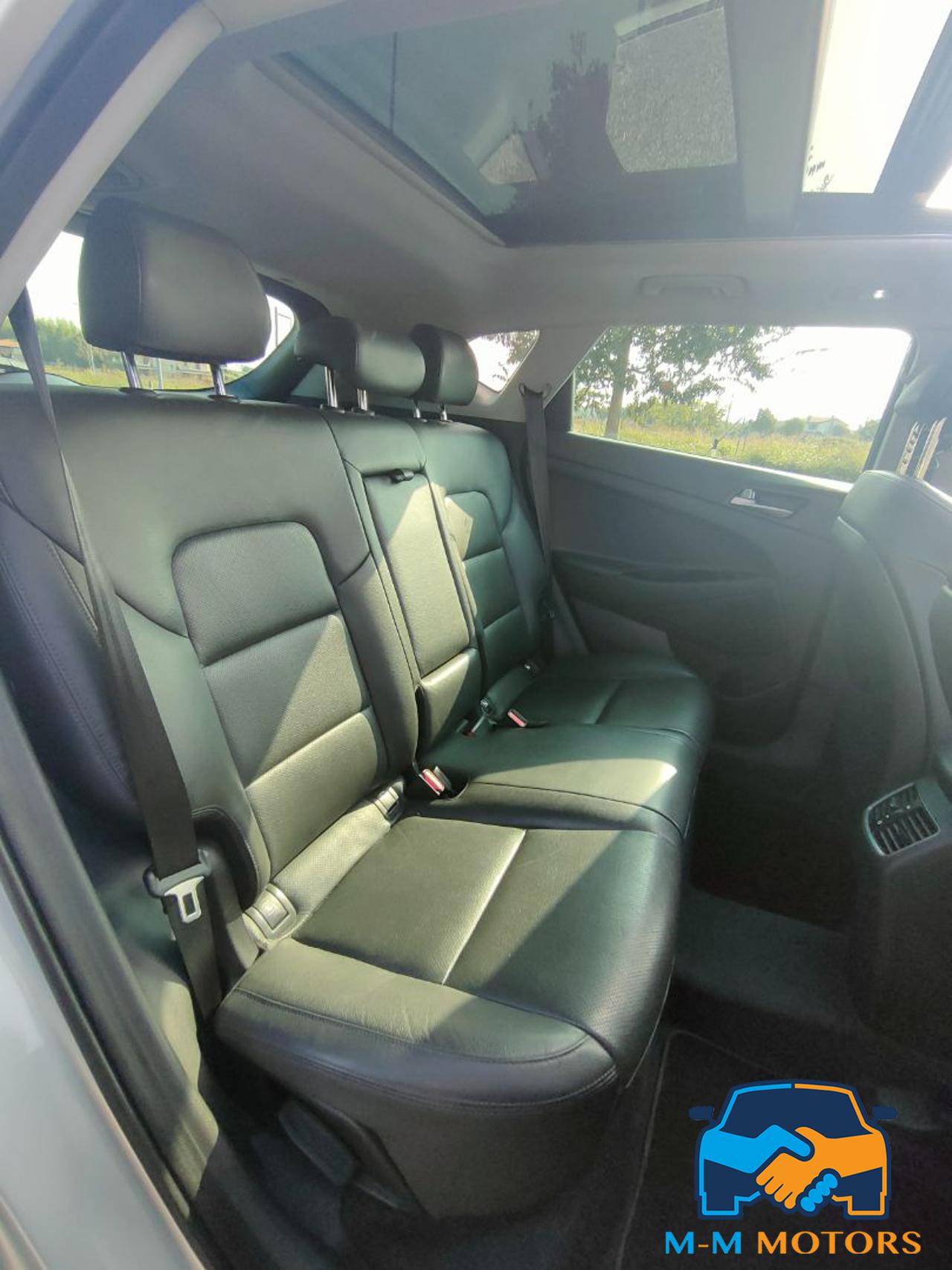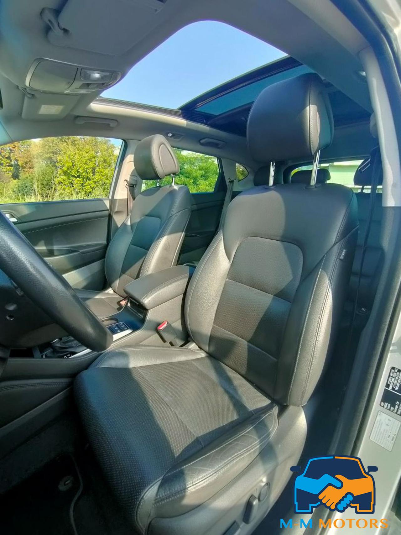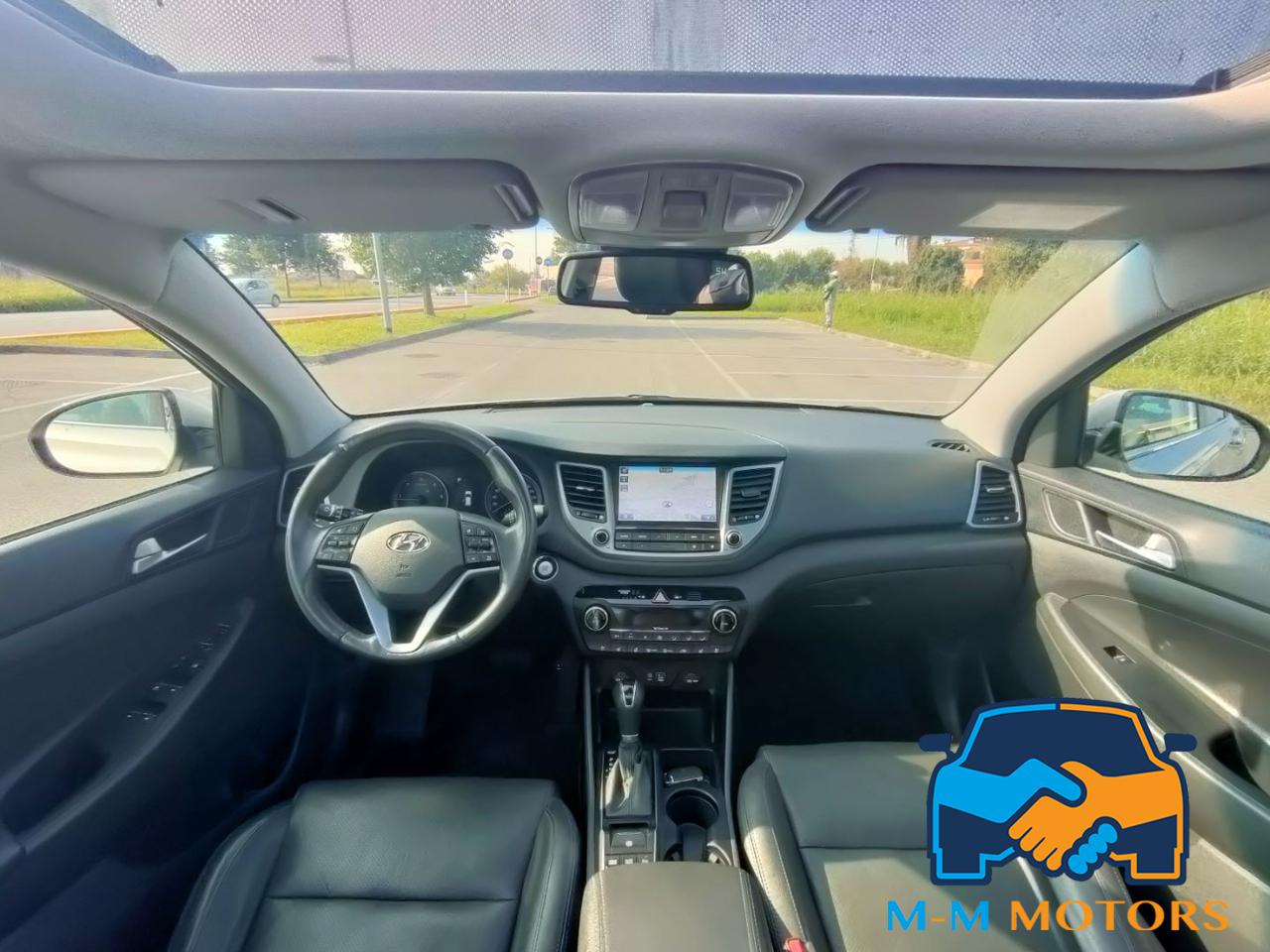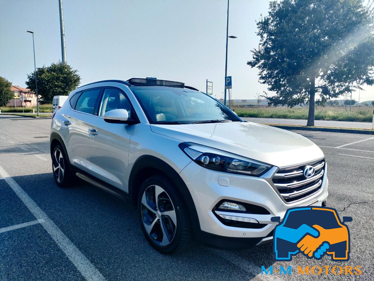 Questa Hyundai Tucson del 2016 è un SUV compatto di medie dimensioni, circa 4.476 mt di lunghezza e 1.85 mt di larghezza, che combina praticità e comfort grazie all'abitacolo lussuoso tra cui tetto panoramico apribile che permette una maggiore luminosità interna, rivestimenti in pelle, sedili riscaldati e supporto lombare, climatizzatore automatico bizona, volante multifunzione in pelle e cruise control, navigatore satellitare, radio, Bluetooth/vivavoce e telecamera posteriore con sensori di parcheggio anteriori e posteriori. Linee moderne, fari a LED diurni e fendinebbia, cerchi in lega da 19 pollici. Le caratteristiche includono motori efficienti, sistemi di sicurezza e infotainment, e un ampio bagagliaio. Meccanicamente in eccellenti condizioni, manutenzioni regolari in rete ufficiale fino al 2023 e successivamente da meccanico di fiducia, Km certificati.