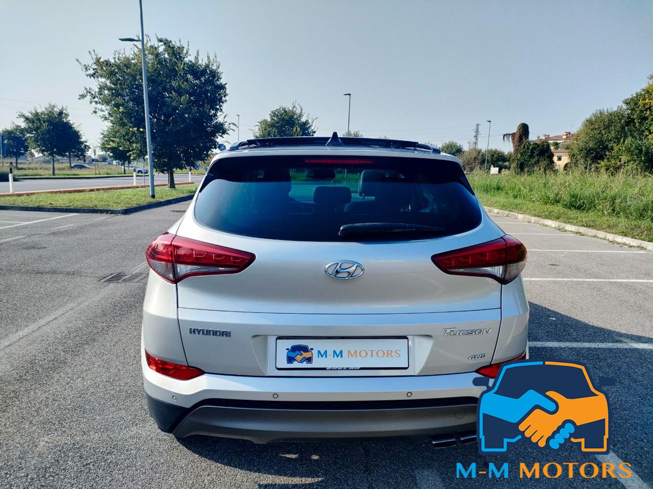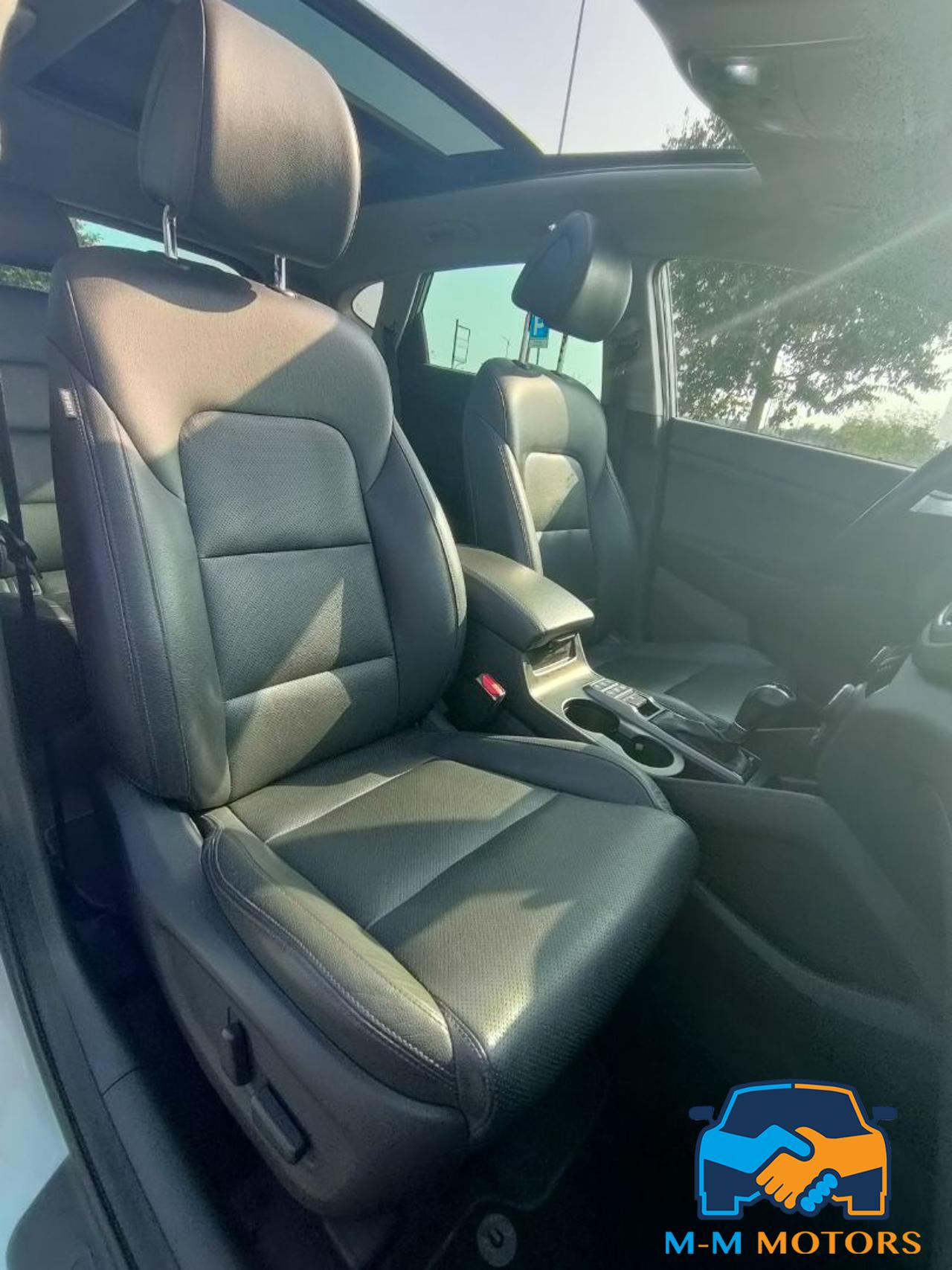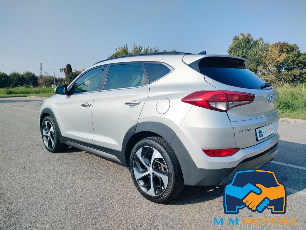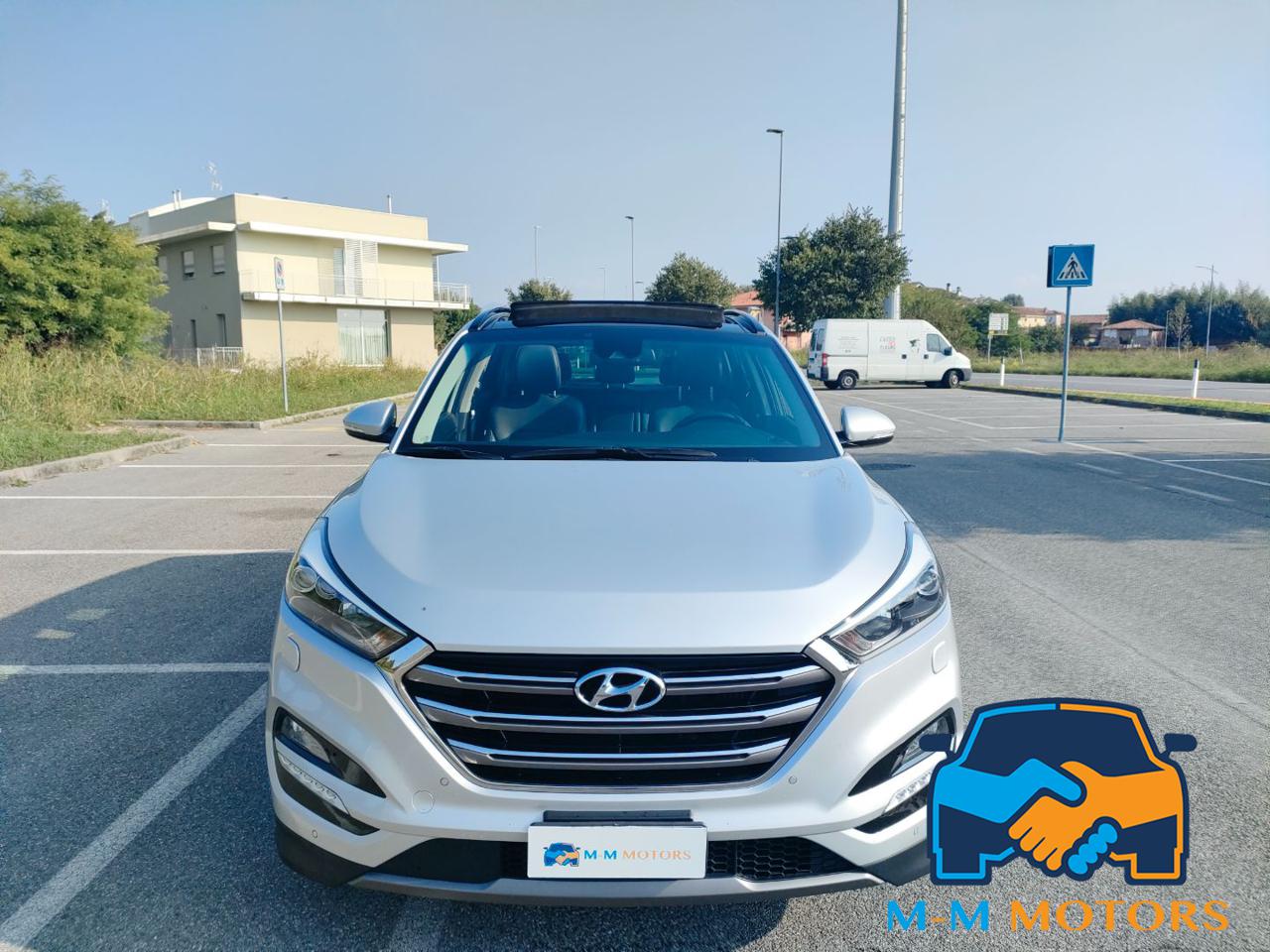 Questa Hyundai Tucson del 2016 è un SUV compatto di medie dimensioni, circa 4.476 mt di lunghezza e 1.85 mt di larghezza, che combina praticità e comfort grazie all'abitacolo lussuoso tra cui tetto panoramico apribile che permette una maggiore luminosità interna, rivestimenti in pelle, sedili riscaldati e supporto lombare, climatizzatore automatico bizona, volante multifunzione in pelle e cruise control, navigatore satellitare, radio, Bluetooth/vivavoce e telecamera posteriore con sensori di parcheggio anteriori e posteriori. Linee moderne, fari a LED diurni e fendinebbia, cerchi in lega da 19 pollici. Le caratteristiche includono motori efficienti, sistemi di sicurezza e infotainment, e un ampio bagagliaio. Meccanicamente in eccellenti condizioni, manutenzioni regolari in rete ufficiale fino al 2023 e successivamente da meccanico di fiducia, Km certificati.