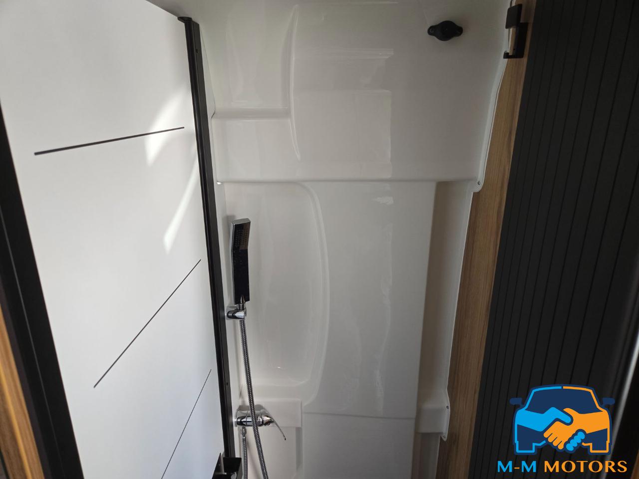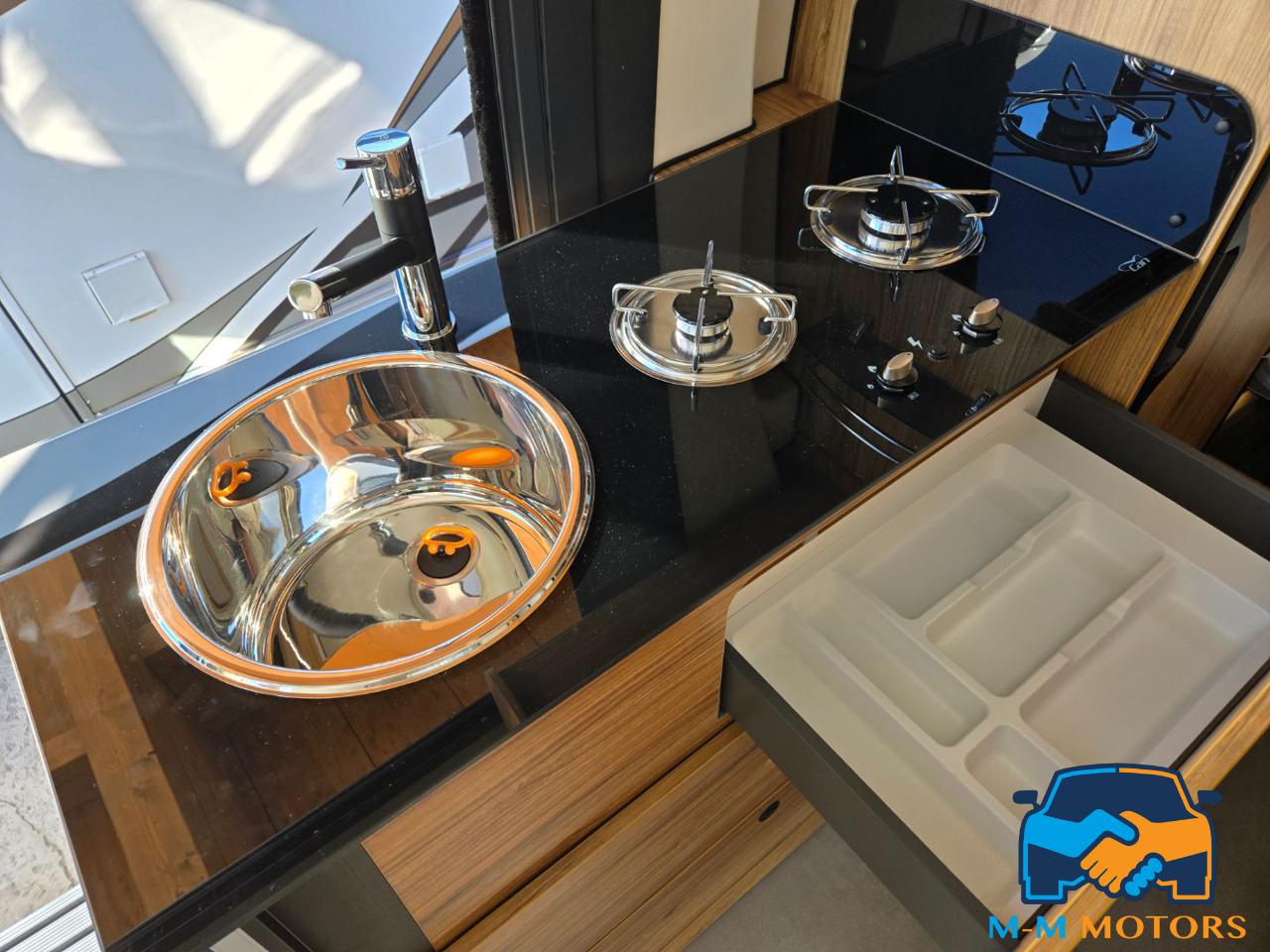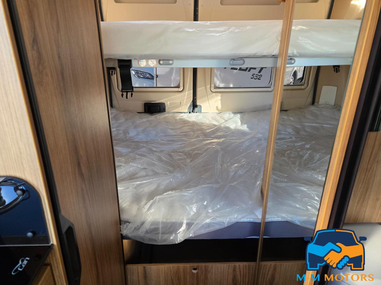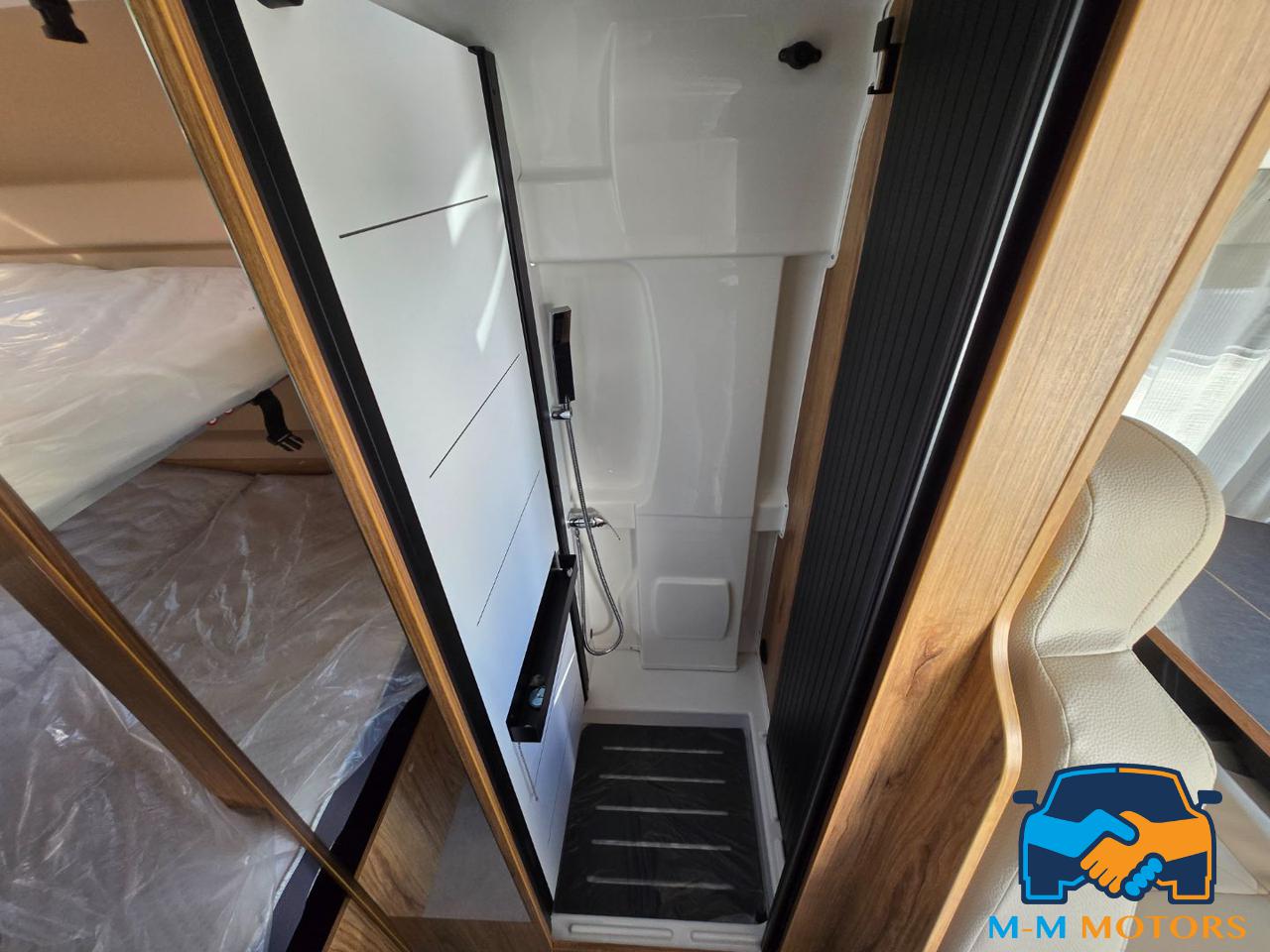 Doccia separata Wc e lavandino Doppio letto in coda Sedili anteriori girevoli Piano cottura a 2 fuochi Arredi moderni e funzionali Ampi vani portaoggetti